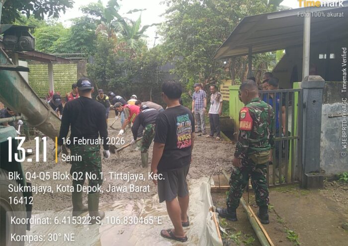 Depok- Program TMMD Ke-127 Tahun Anggaran 2026 yang digelar oleh Kodim 0508/Depok terus menunjukkan progres positif. Memasuki hari ke-6 pelaksanaan, senen (16/2/2026), sasaran pengerasan jalan…