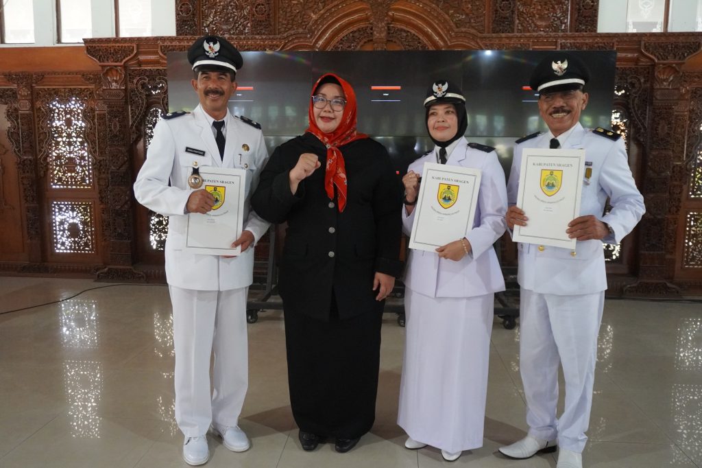 SRAGEN – Sebanyak 195 Kepalda Desa (Kades) di Kabupaten Sragen dikukuhkan masa jabatannya, diperpanjang dari enam tahun menjadi delapan tahun. Pengukuhan dan penyerahan Surat Keputusan dilakukan oleh Bupati Sragen Kusdinar Untung Yuni Sukowati, di Pendopo Rumah Dinas Bupati Sragen Kamis (13/6/2024).