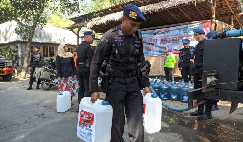 KOMPI 1 BATALYON C PELOPOR SATBRIMOB POLDA JATIM BERIKAN BANTUAN AIR BERSIH DI DUSUN BANGGI