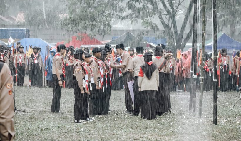 Meskipun Diguyur Hujan, Upacara Pembukaan Lomba Tingkat III Kwarcab Gerakan Pramuka Ciamis Berlangsung Khidmat