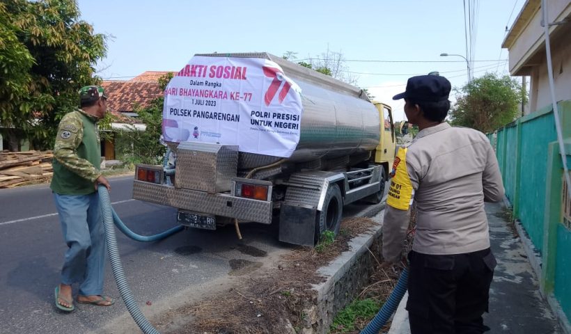 Polisi RW Polres Sampang Terus Bagikan Air Bersih Kepada Masyarakat Dan Tempat-Tempat Ibadah