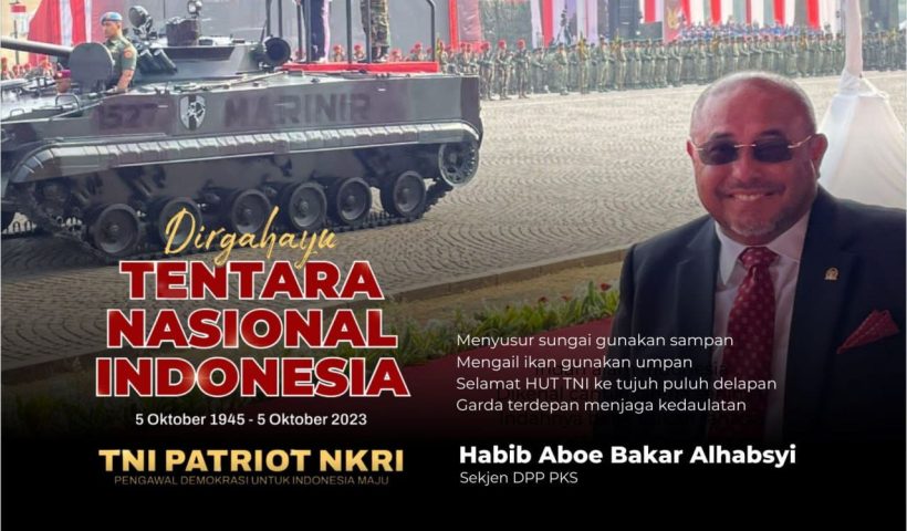 Selengkapnya... Sekjen DPP PKS, Habib Aboe Bakar Alhabsy, SE, Mengucapkan Selamat Hari Dirgahayu TNI ke – 78Hari: 5 Oktober 2023