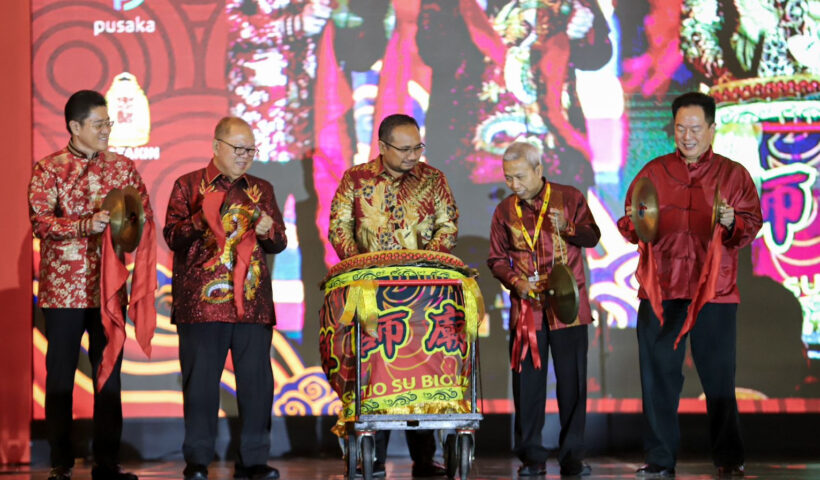 Jakarta — Menteri Agama Republik Indonesia Yaqut Cholil Qoumas membuka perayaan Imlek Nasional 2024 Masehi / 2575 Khongzili di Gedung Samudera, Jakarta pada Senin (13/2/2024).…