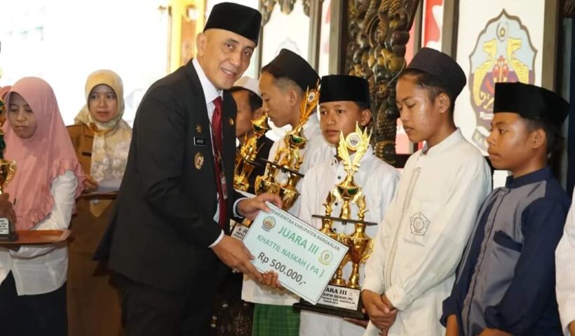 BANGKALAN – PENJABAT (Pj) Bupati Bangkalan Dr. Arief M. Edie, M.Si menyerahkan trofi dan hadiah berupa uang pembinaan kepada para juara Musabaqah Tilawatil Qur’an (MTQ) ke-15…