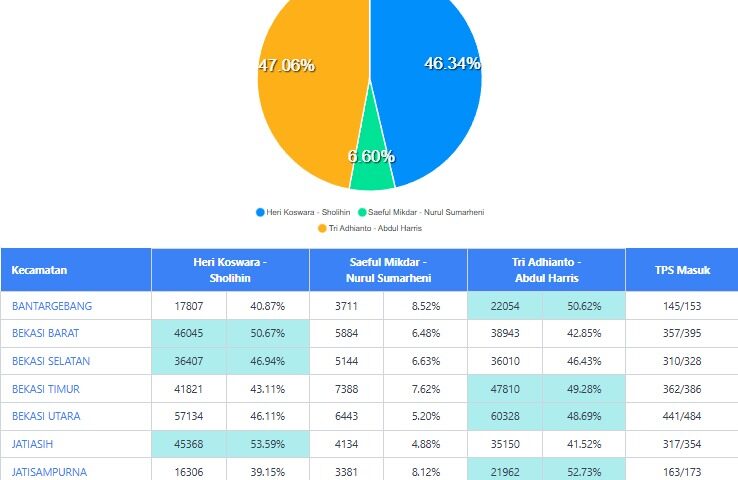 Selengkapnya... Unggul Sementara Berdasarkan Rekapitulasi Tingkat Kecamatan, BN Holik-Faizal: Terima Kasih Warga Kabupaten BekasiBulan: November 2024