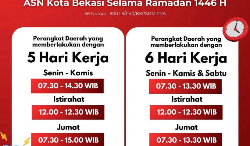 Bekasi – Berdasarkan Peraturan Presiden Republik Indonesia Nomor 21 Tahun 2023 tentang Hari Kerja dan Jam Kerja Instansi Pemerintah dan Pegawai Aparatur Sipil Negara, Pemerintah…