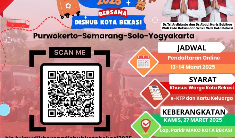 Kota Bekasi – Pemerintah Kota Bekasi melalui Dinas Perhubungan tahun ini mengadakan Mudik Lebaran dengan Tema Mudik Gratis 2025. Seperti tahun-tahun sebelumnya Mudik Gratis ini…
