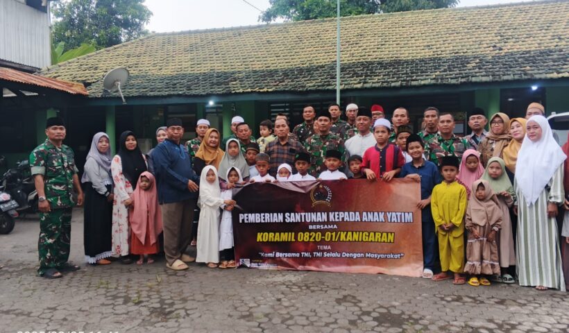 Probolinggo – BN NEWS Koramil 0820/01 Kanigaran Probolinggo Kota gelar aksi bhakti sosial pembagian santunan anak yatim yang diberi TEMA “Kami Bersama TNI, TNI Selalu…