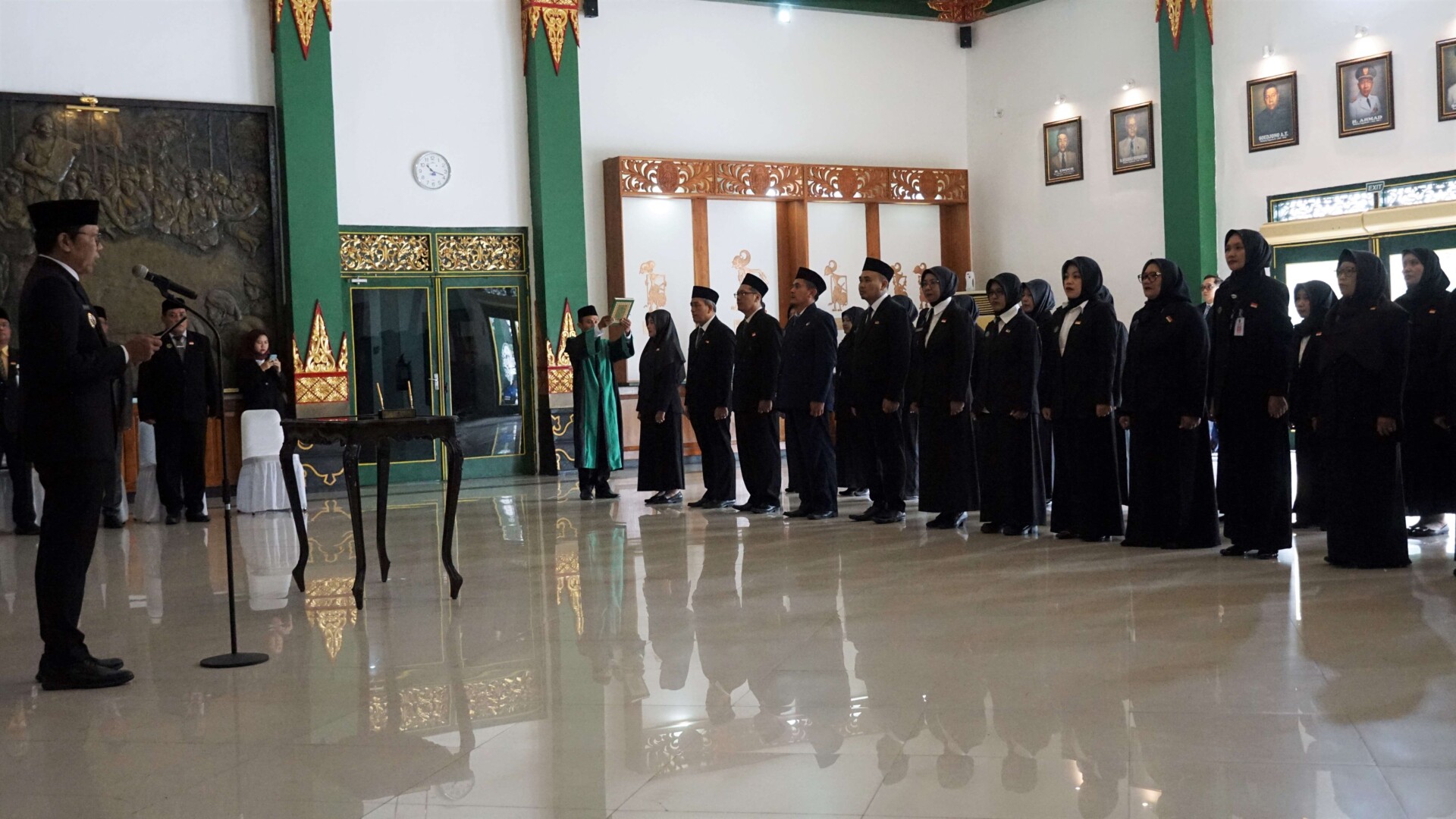 UMBULHARJO – Pelitakota.id Penjabat Wali Kota Yogyakarta Singgih Raharjo melantik dan mengambil sumpah 3 jabatan pengawas sekolah dan 27 kepala sekolah di lingkungan Pemerintah Kota Yogyakarta. Pelantikan itu untuk mengisi pengawas dan kepala sekolah yang sebelumnya diisi pelaksana yang rangkap jabatan. Dengan pelantikan itu diharapkan sekolah bisa terkelola secara baik dan meningkatkan mutu pendidikan.