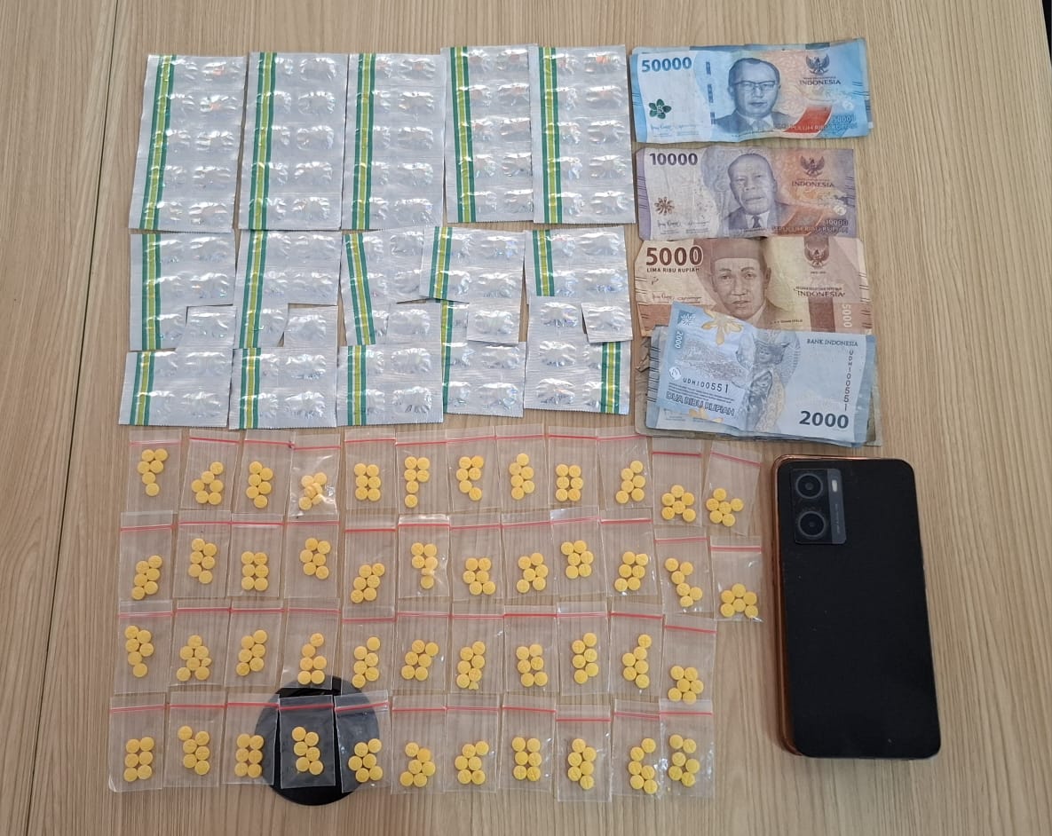 “Kami merespon cepat adanya informasi dan aduan dari masyarakat. Lalu keduanya tidak dapat berkelit karena ditemukan barang bukti ratusan obat terlarang jenis exymer dan tramadol, termasuk ratusan ribu uang hasil penjualan barang haram ini,” beber Kasi Humas.