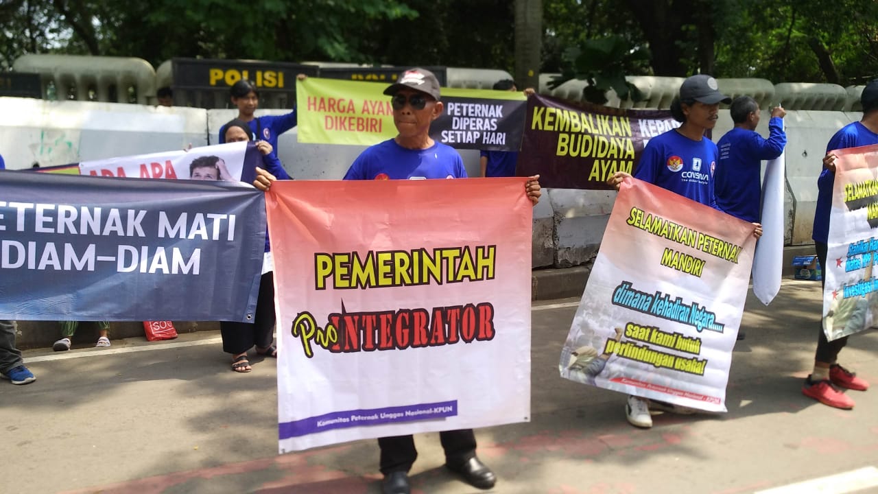Unggas Nasional ( KPUN ) menggelar aksi Peternak Ayam yang berlokasi di Istana Negara dan Kantor Menteri Koordinator Bidang Pangan.