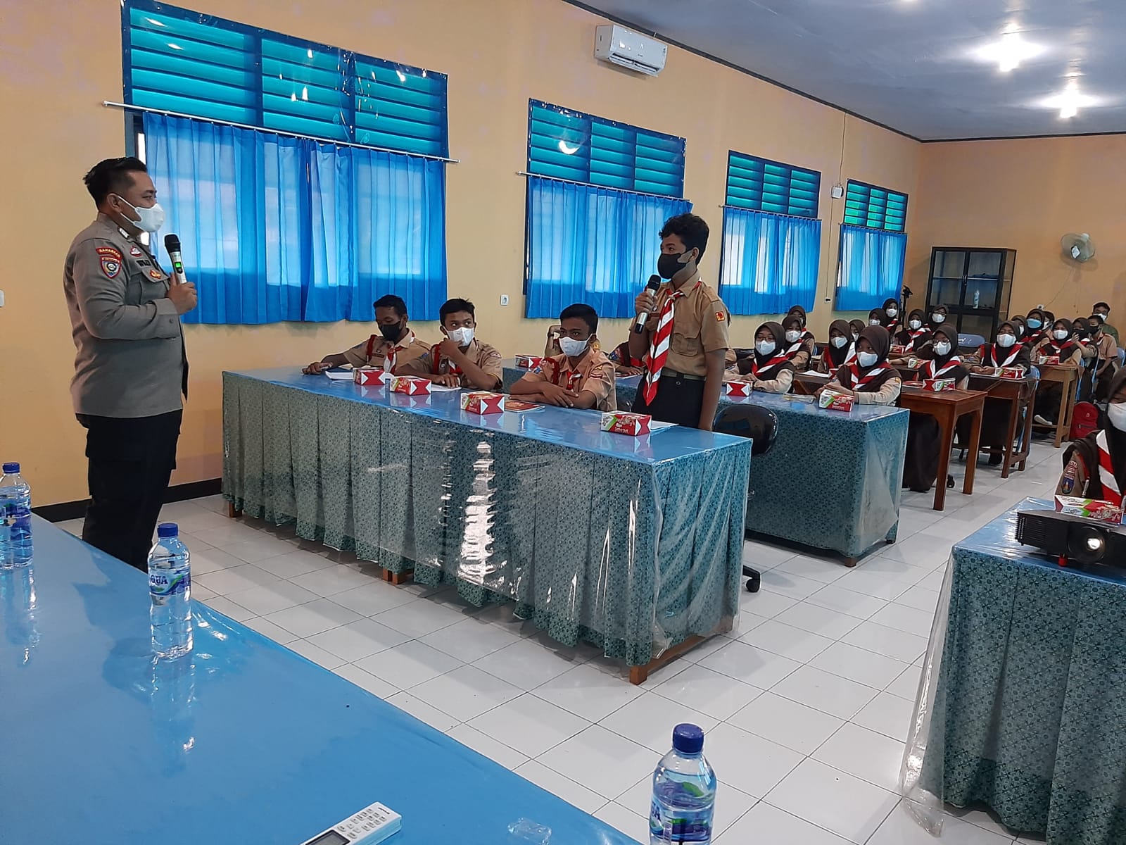LEBAK – PELITAKOTA.ID| Satuan Binmas Kepolisian Resor Lebak Polda Banten memberikan Pelatihan Satuan Karya Pramuka Bhayangkara (Saka Bhayangkara) di SMPN 2 Rangkasbitung, (19/11/2021).