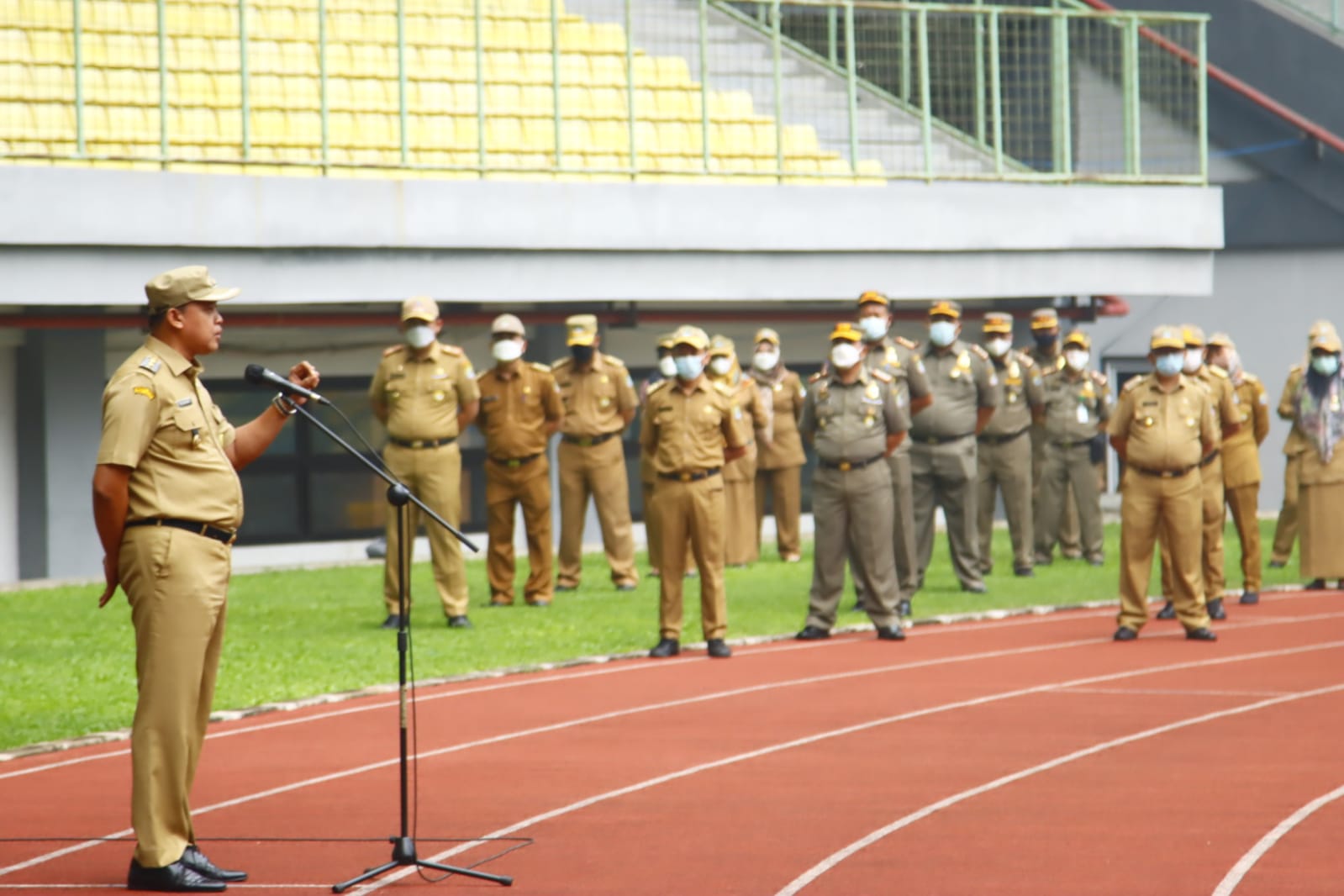 KOTA BEKASI, Senin, 10 Januari 2022 – Tri Adhianto lakukan apel perdana sebagai Pelaksana Tugas (Plt.) Walikota Bekasi, di Setadion Patriot Chandrabaga.
