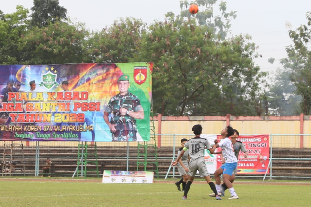 Purwokerto – Pertandingan seru, menegangkan dan menarik tersaji dalam laga Semifinal kompetisi Sepak Bola Liga Santri Piala Kasad Tahun 2022 tingkat Korem 071/Wijayakusuma.