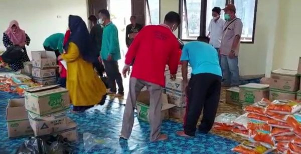 Kendati saat itu ditengah terik matahari sore yang cukup panas dan berkeringat warga tetap bersemangat bergotong royong melakukan pengemasan paket sembako yang terdiri dari beras 5 kg, gula pasir, minyak goreng dan tepung terigu.