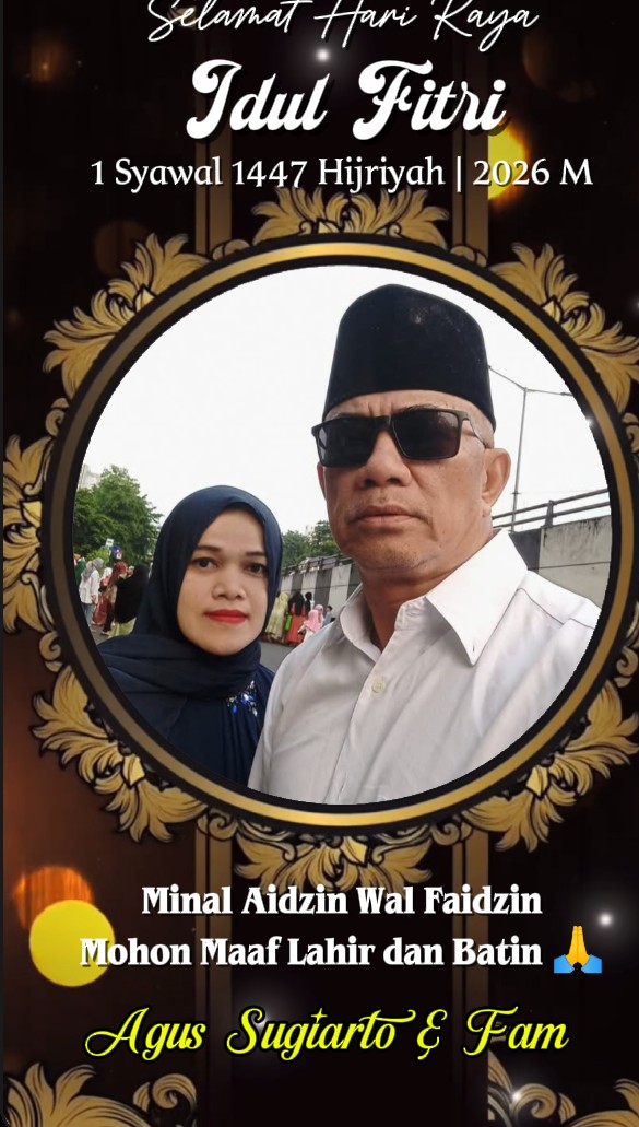 Lebih lanjut Agus Sugiarto bersama keluarga mengucapkan” Selamat Hari Raya Idul Fitri 1447.H” Mohon Maaf Lahir dan Batin, dengan hati yang tulus saya pribadi bersama pengurus menyampaikan mohon maaf atas segala kesalahan yang pernah terjadi.