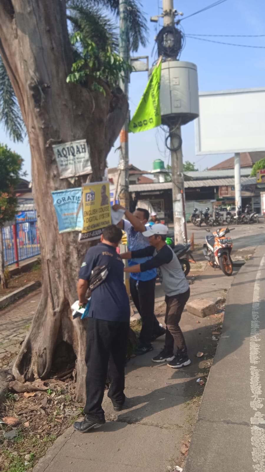 Kota Bekasi – Camat Bekasi Selatan laksanakan aksi gabungan penertiban spanduk / banner liar (tidak berizin) bersama unsur Tiga Pilar dan OPD terkait.