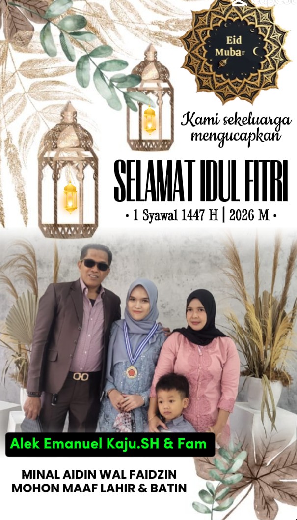 Lebih lanjut Alek Emanuel Kaju.SH Bersama Keluarga mengucapkan” Selamat Hari Raya Idul Fitri 1447.H” Mohon Maaf Lahir dan Batin, dengan hati yang tulus saya pribadi bersama pengurus menyampaikan mohon maaf atas segala kesalahan yang pernah terjadi.