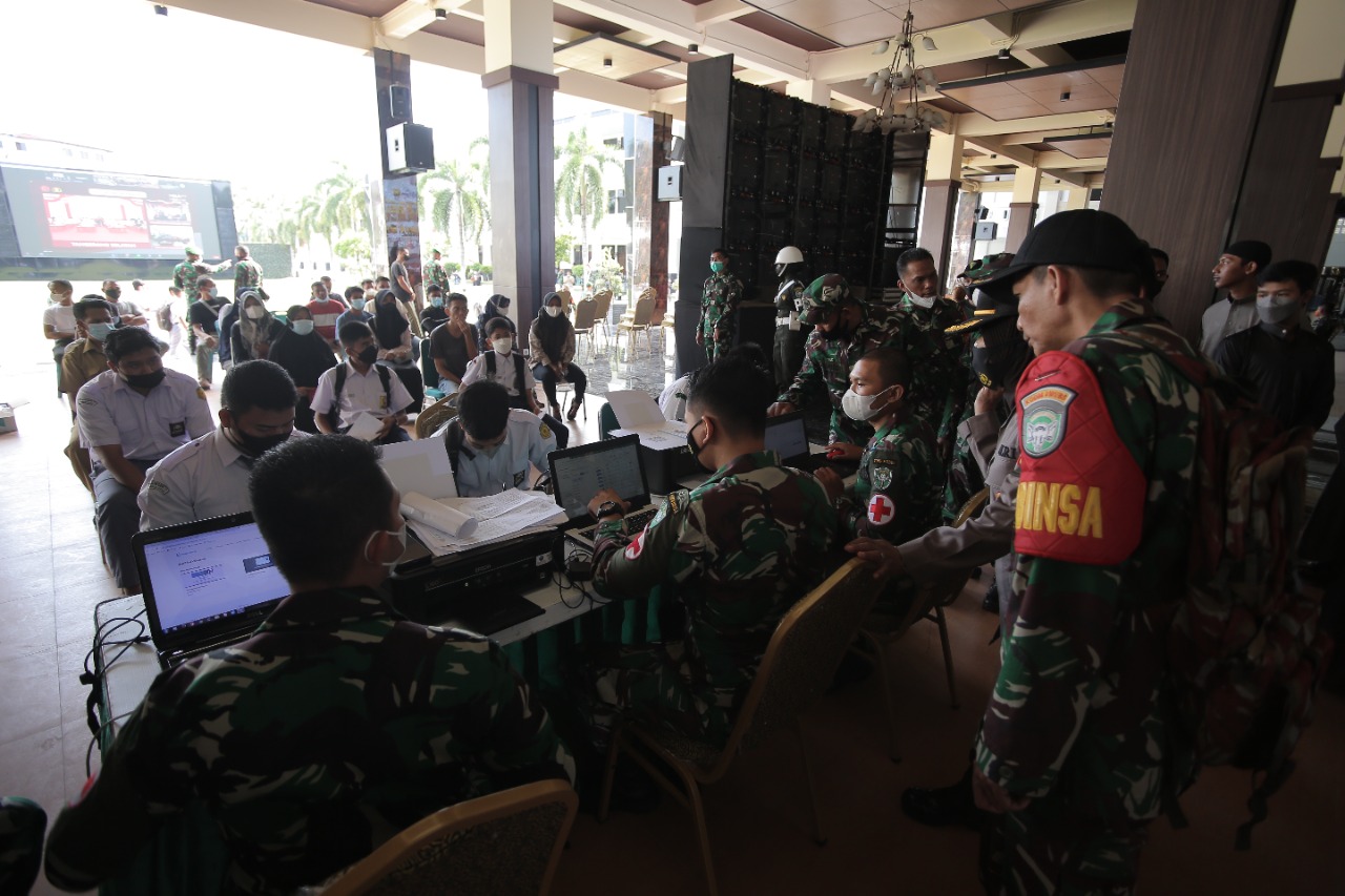 Namun demikian, untuk menghindari kerumunan, TNI-Polri yang bertugas, terus mengarahkan para peserta yang mengikuti vaksinasi Covid-19 untuk melaksanakan protokol kesehatan.