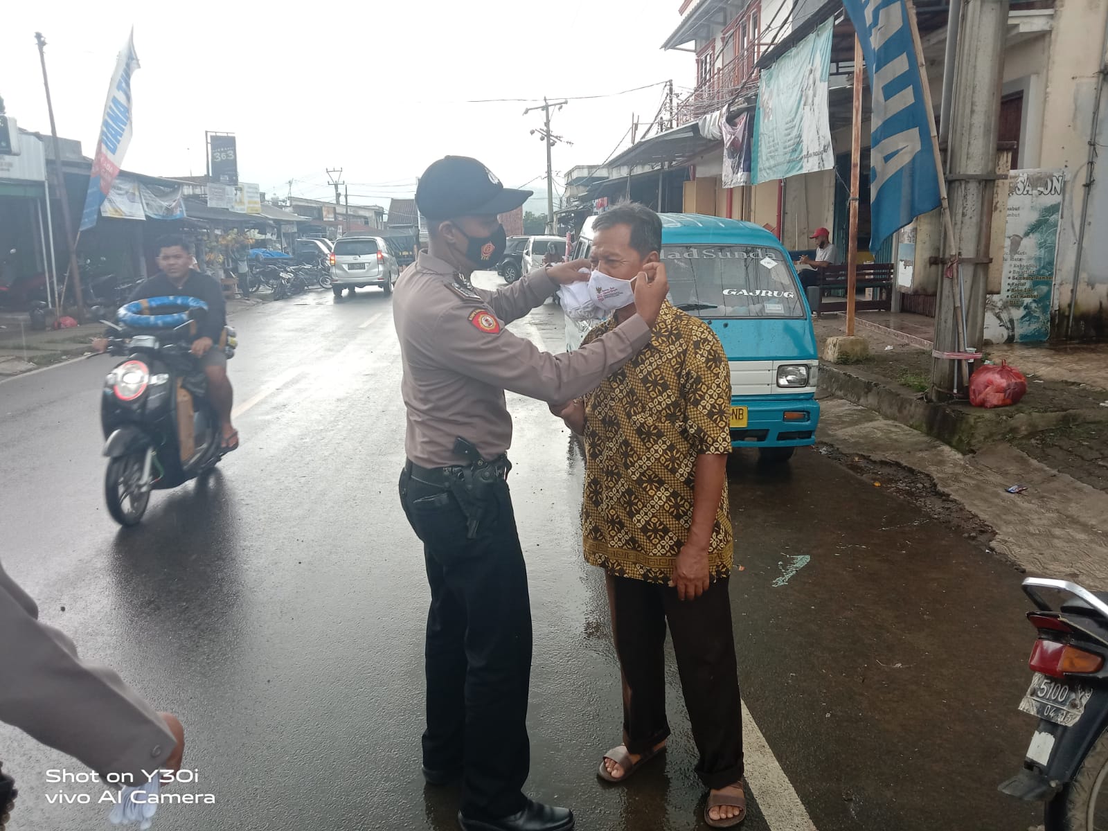 LEBAK | Pandemi Belum Berakhir, Personil Polsek Cipanas terus berikan Himbauan Prokes dan bagikan Masker kepada warga masyarakat yang berkunjung ke pasar gajrug desa Bintangresmi Kecamatan Cipanas Kabupaten Lebak.