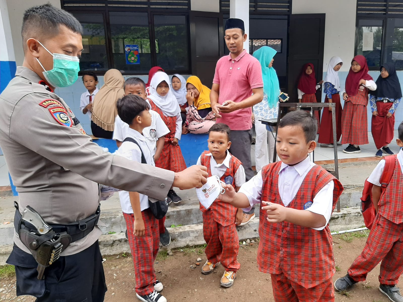 Lebak – Pandemi Covid-19 yang belum berakhir Personil Polsek Cipanas, terus berikan Himbauan kepada murid dan wali murid tentang pentingnya Prokes dan juga membagikan Masker, Pada hari Kamis (10/03/2022)