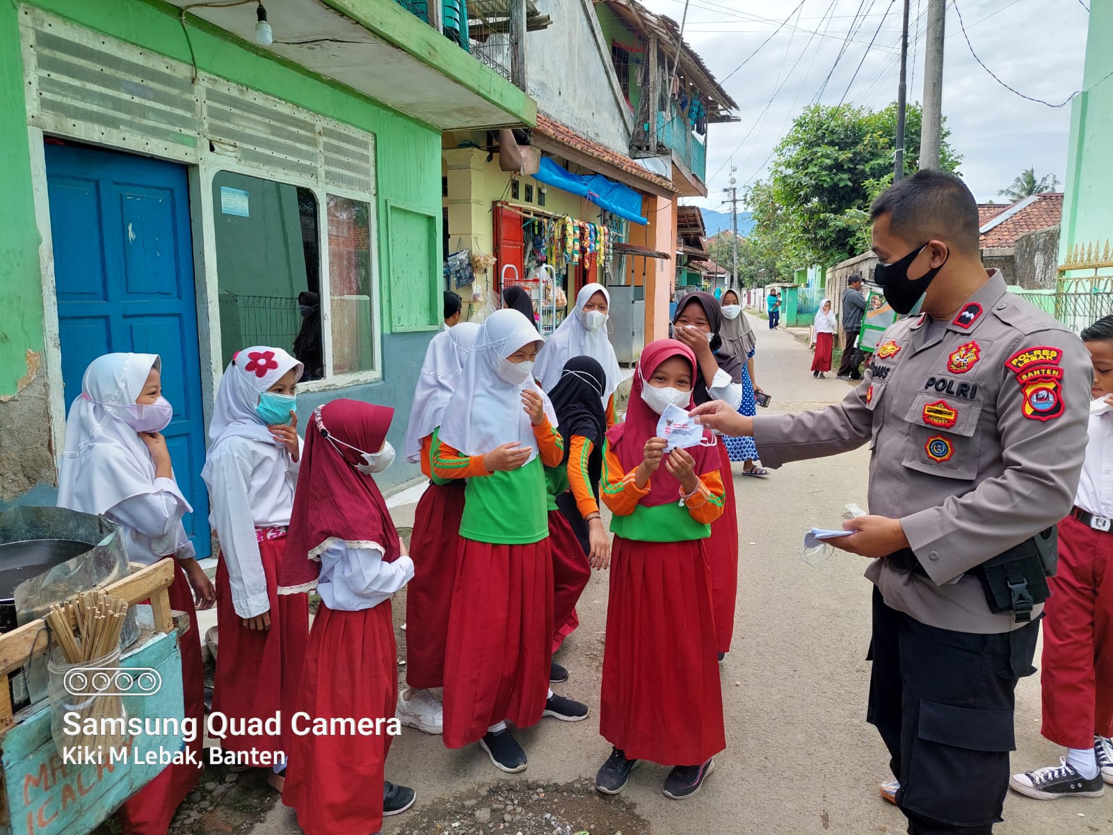 Lebak – Pandemi Belum Berakhir, Personil Polsek Cipanas terus berikan Himbauan Prokes dan bagikan Masker kepada wali murid dan siswa-siswi MI BANI KARIM Desa Sukasari Kecamatan Cipanas Kabupaten Lebak.