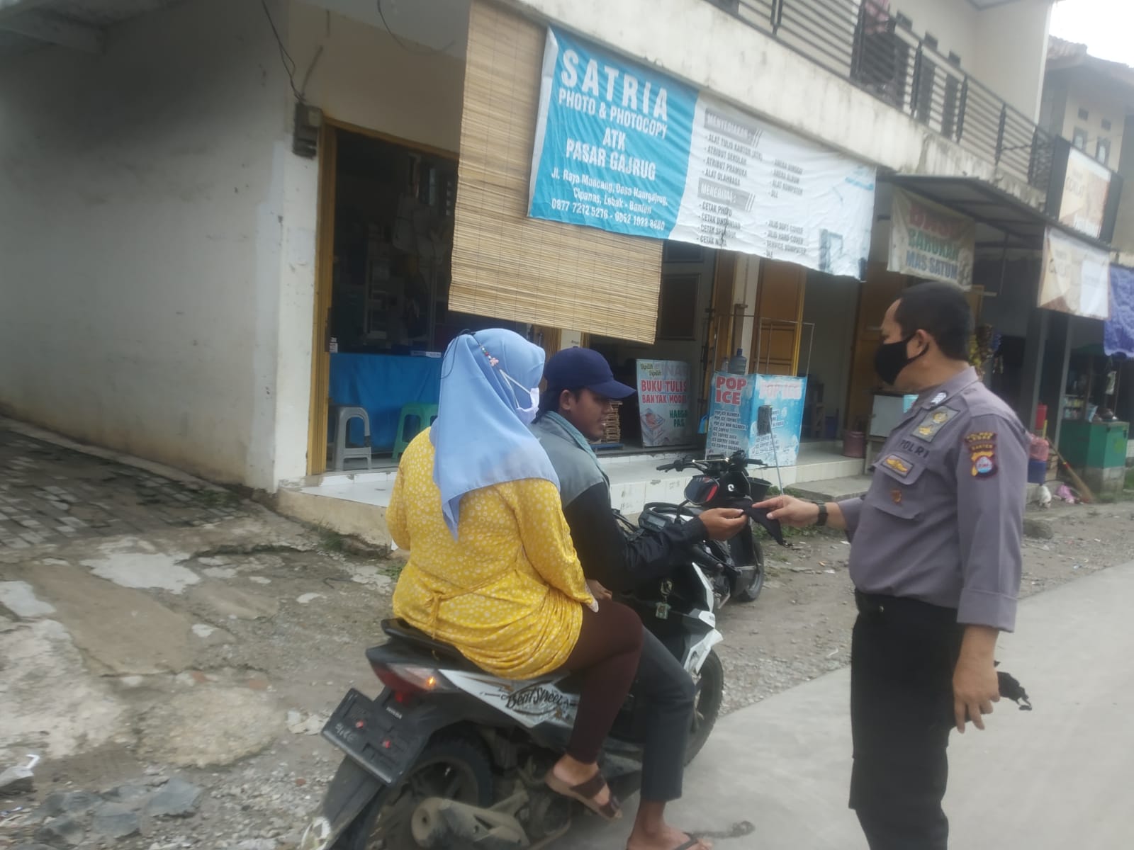Lebak. Pandemi Covid-19 yang belum berakhir Personil Polsek Cipanas, terus berikan Himbauan kepada warga masyarakat tentang pentingnya Prokes dan juga membagikan Masker, Pada hari Minggu (20/02/2022)