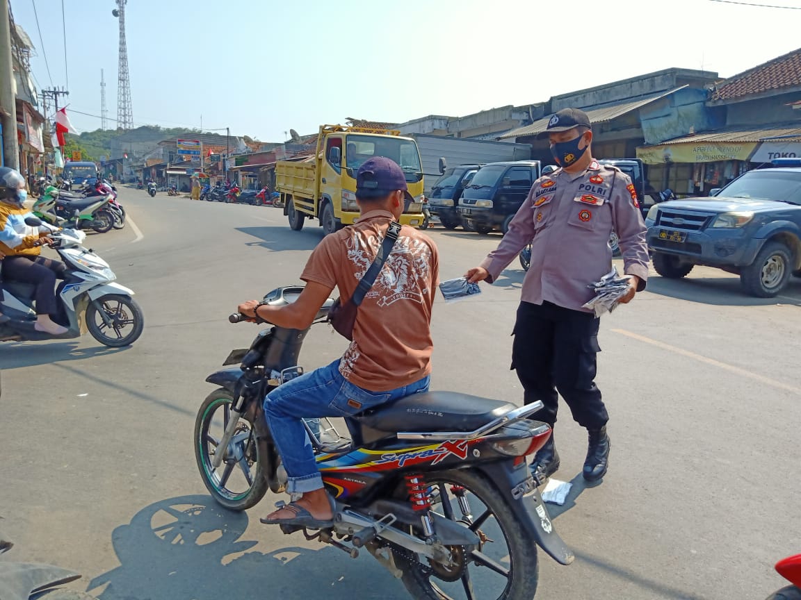 Lebak. Pandemi Covid-19 yang belum berakhir Personil Polsek Cipanas, terus berikan Himbauan kepada warga masyarakat tentang pentingnya Prokes dan juga membagikan Masker, Pada hari Rabu (23/02/2022)