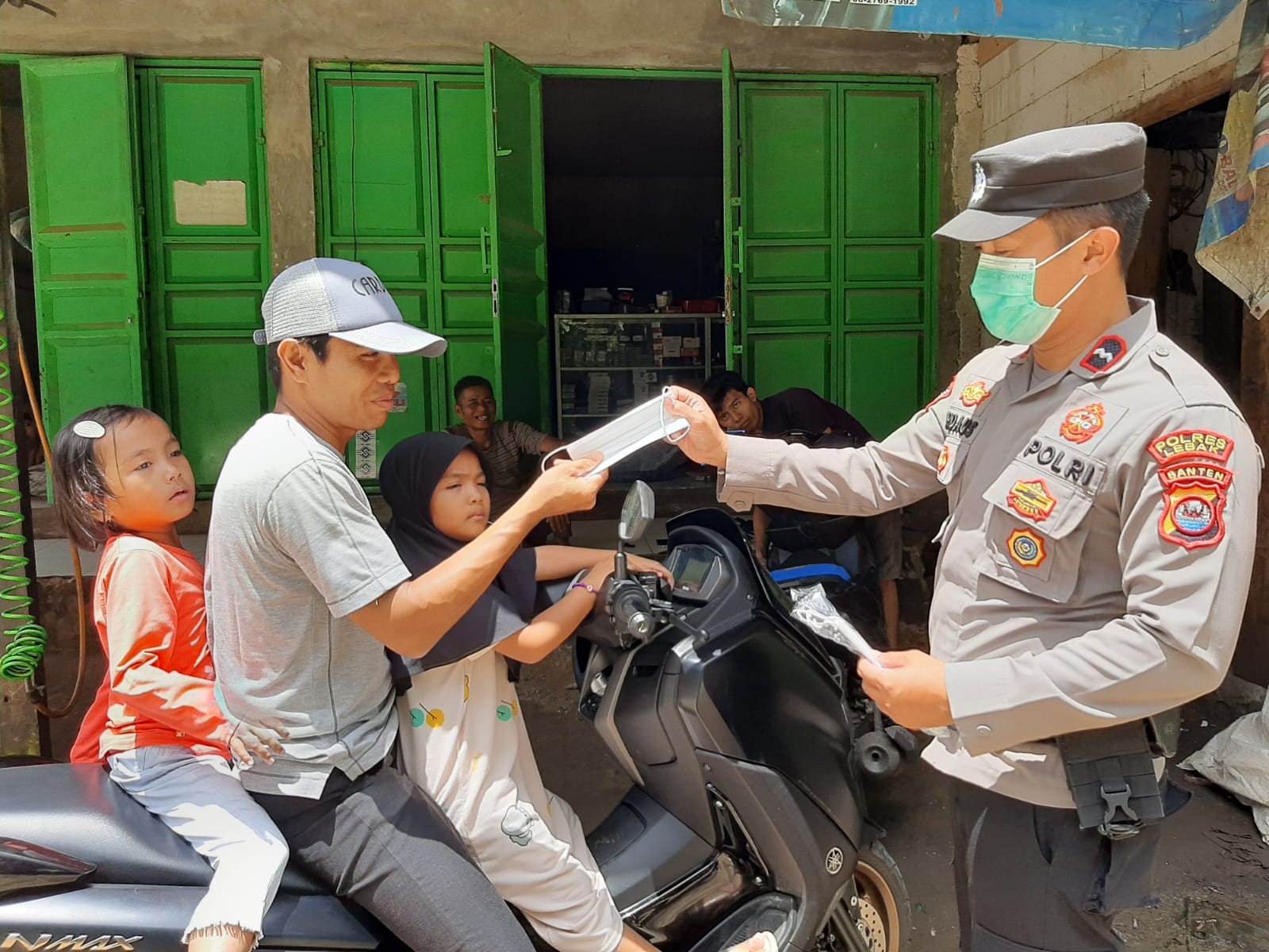 Lebak. Pandemi Covid-19 yang belum berakhir Personil Polsek Lebakgedong, terus berikan Himbauan kepada warga masyarakat yang melintas di jln Raya Cipanas-Warungbanten Kecamatan Lebakgedong tentang pentingnya Prokes dan juga membagikan Masker, Pada hari Senin (04/04/2022)