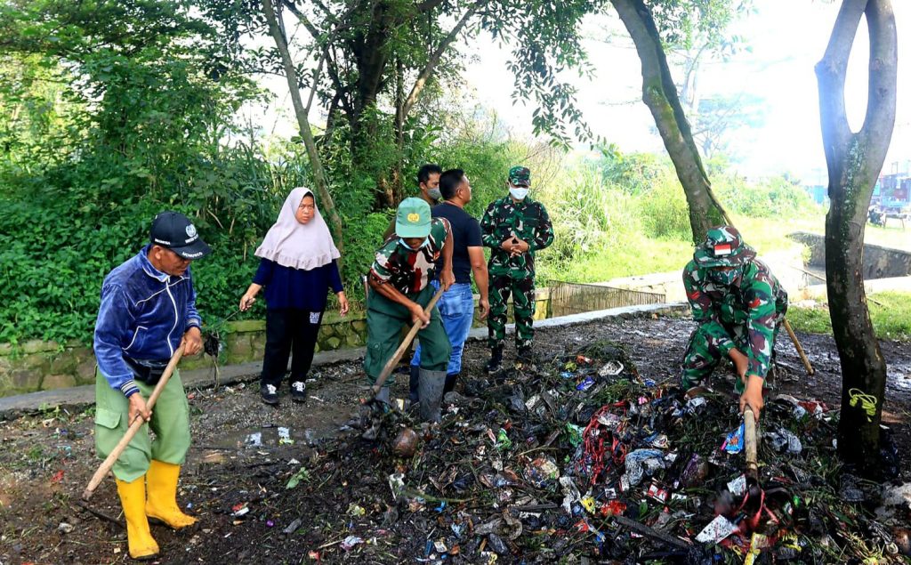 Setelah rutin digelar edukasi tentang makna dan pentingnya menjaga kebersihan dibeberapa tempat, personel Sektor 6 Satgas Citarum, Babinsa, dan masyarakat melakukan kerja bakti bersama membersihkan Anak Sungai Mulyasari Kampung Mulyasari, RW 19 Kelurahan Baleendah, Kecamatan Baleendah Kabupaten Bandung, Jabar.