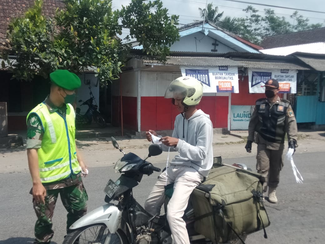 Tidak hanya memberikan himbauan kepada warga masyarakat yang mengabaikan protokol kesehatan, dalam kegiatan tersebut, petugas gabungan juga membagikan masker kepada warga yang kedapatan tidak memakai masker.
