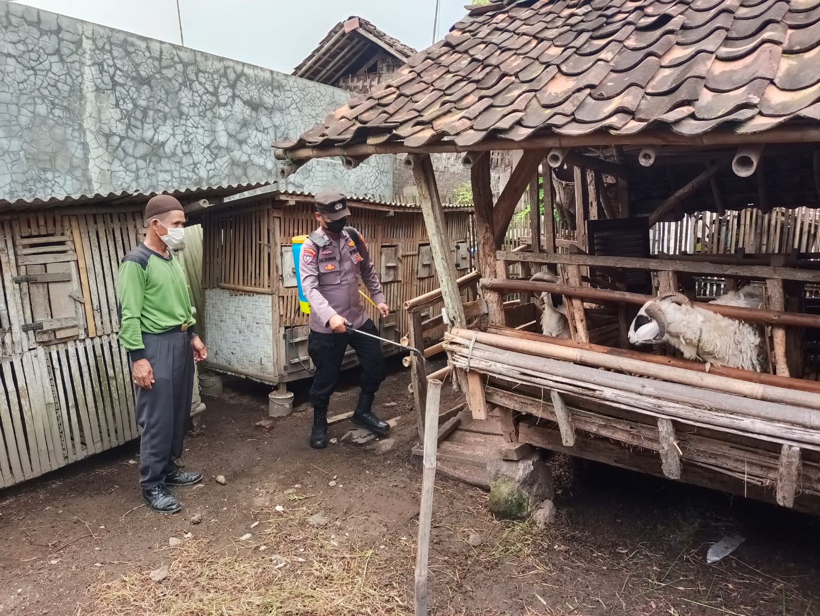 LEBAK,-Anggota Polsek Rangkasbitung Polres Lebak, BRIPKA AK.Nurdin dan BRIPKA Turas Catur, melaksanakan giat pengecekan dan penyemprotan cairan disinfektan ke kandang hewan ternak, antisipasi sebaran wabah Penyakit Mulut dan Kuku (PMK) pada hewan ternak,di kampung Babakan, Desa Sukamekarsari, Kecamatan Kalanganyar, Kabupaten Lebak. Sabtu (16/7/2022)