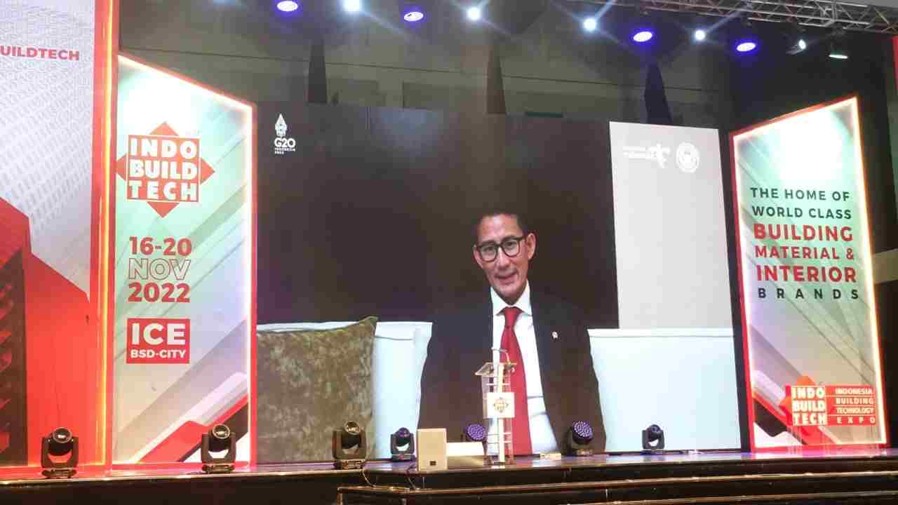 Selanjutnya Menteri PUPR yang diwakili Dirjen Bina Konstruksi Kementerian PUPR Yudha Mediawan, dan Menteri Pariwisata dan Ekonomi Kreatif Sandiaga Uno yang menyampaikan kata sambutannya secara Online dari Bali di sela kegiatan G 20.