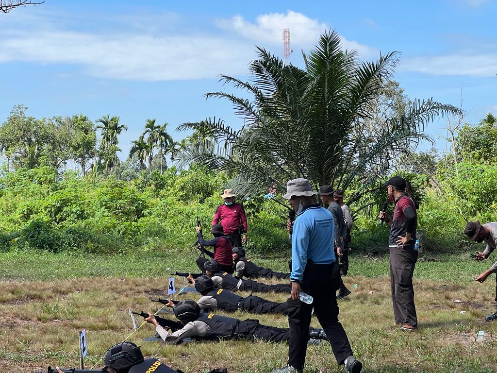 Pontianak Kalbar – Jajaran Personel dari Ditsamapta Polda Kalimantan Barat melaksanakan latihan menembak di lapangan tembak Rasau Jaya SPN Polda Kalbar pada Jumat, 11 Maret 2022.
