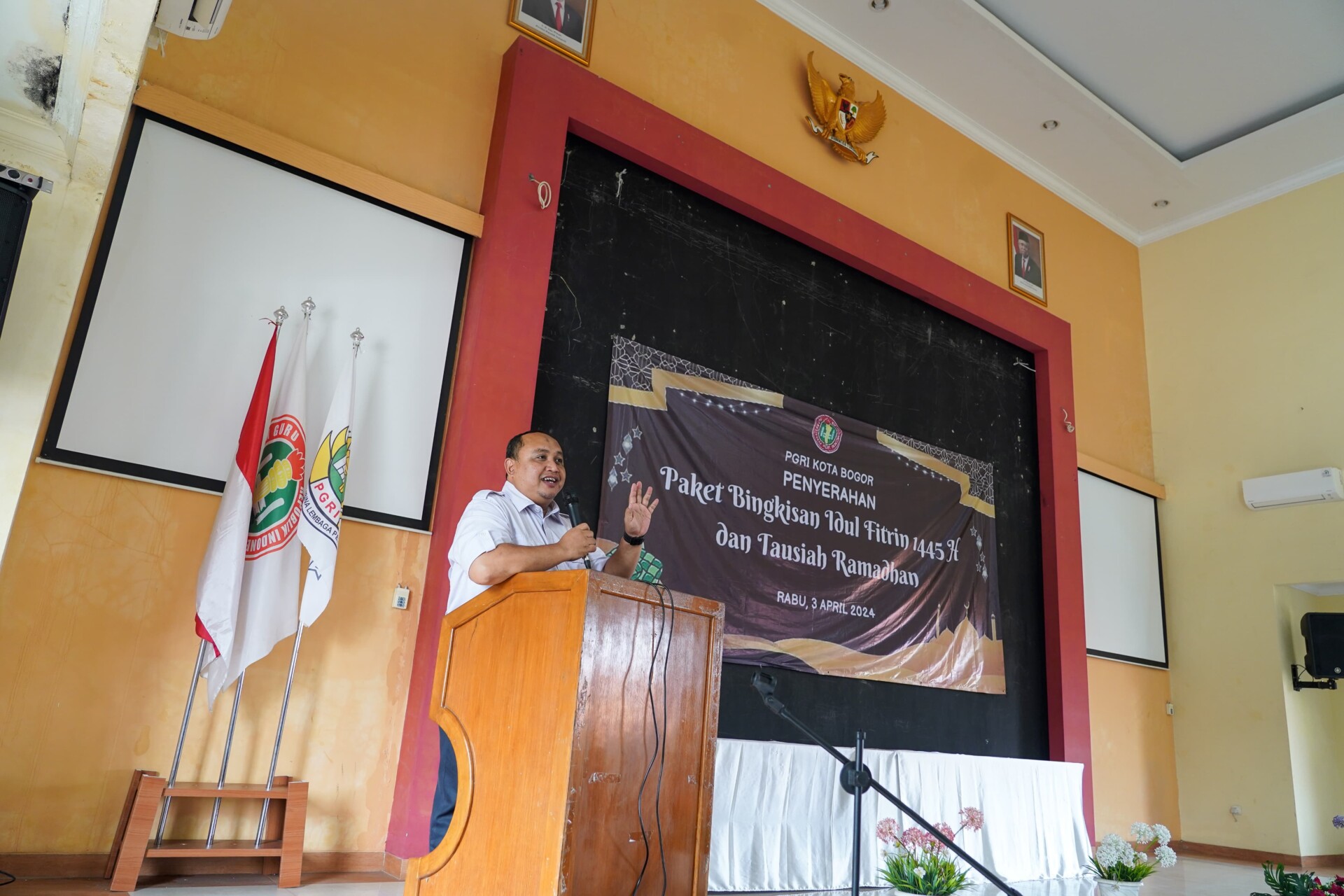 Kota Bogor – Persatuan Guru Republik Indonesia (PGRI) pengurus Kota Bogor bersama Ketua DPRD Kota Bogor, Atang Trisnanto dan stakeholder dunia pendidikan di Kota Bogor, membagikan bingkisan Idul Fitri untuk anak yatim dan kaum dhuafa, Rabu (3/4/2024).