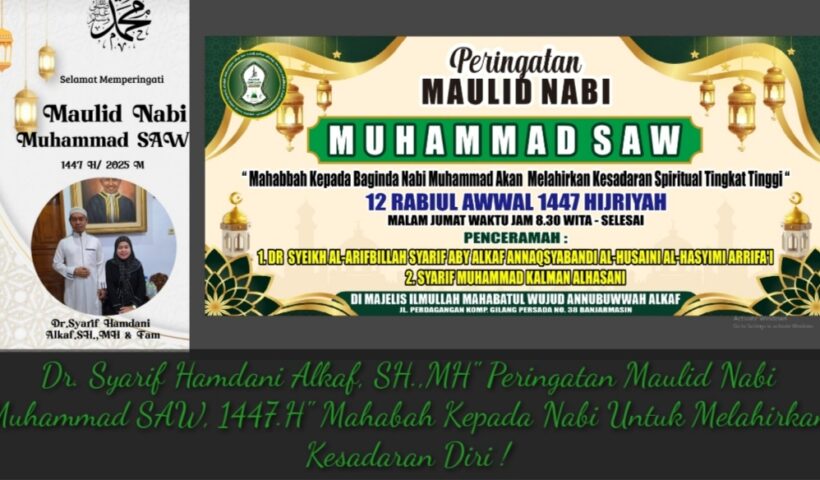 Selengkapnya... Dr. Syarif Hamdani Alkaf, SH.,MH” Peringatan Maulid Nabi Muhammad SAW, 1447.H” Mahabah Kepada Nabi Untuk Melahirkan Kesadaran Diri !