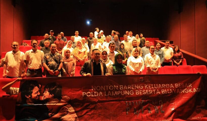 LAMPUNG – Kapolda Lampung Irjen Pol Helmy Santika bersama Wakapolda Brigjen Pol Ahmad Ramadhan dan para Pejabat Utama (PJU) Polda Lampung menghadiri acara nonton bersama…