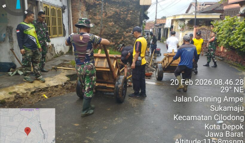 Depok – Program TMMD Ke-127 TA 2026 Kodim 0508/Depok pada Jumat, 20 Februari 2026, turut fokus pada pembangunan drainase di Jl. Bojong Lio RT 03/28,…