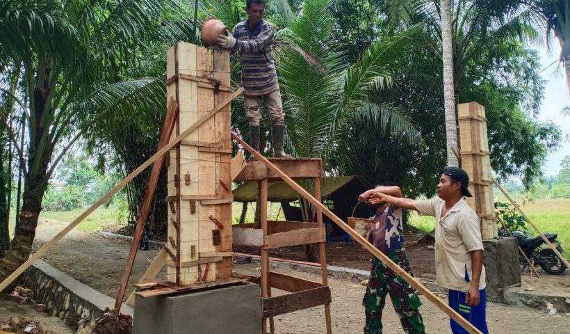 Selengkapnya... Pengecoran Tiang Gapura Pra TMMD Berjalan Lancar