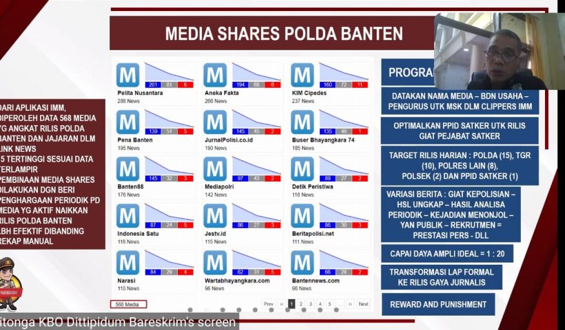 SERANG – PELITAKOTA.ID Kabid Humas Polda Banten memberikan arahan kepada personel Humas di Polres dan Polsek jajaran terkait program ledakan rilis dan bermedsos ria melalui…