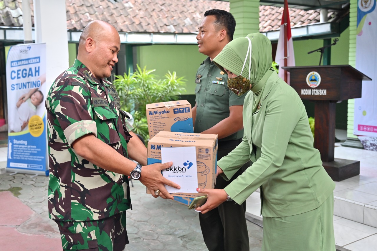 Sukoharjo – Dandim 0726/Sukoharjo Letkol Czi Slamet Riyadi, S.E memberikan sambutan dan mengikuti rangkaian kegiatan Promosi dan KIE Program percepatan Penurunan Stunting BKKBN Propinsi Jawa Tengah Bersama Mitra Kerja TNI dari Kodim 0726/ Sukoharjo, Jumat (18/11/22).