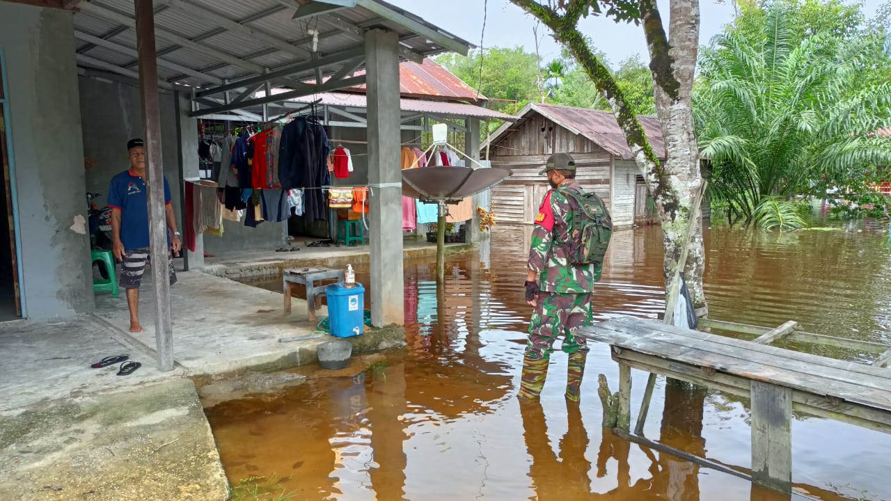 Palangka Raya, Senin (15/11/21) – Pelitakota.id Sertu Sugianto Babinsa Sei Gohong Koramil 1016-02/Bukit Batu melaksanakan pemantauan banjir yang terjadi di wilayah binaannya. Banjir terjadi di Jalan Gampung RT. 01 dan RT. 02 RW. 01 Kelurahan Sei Gohong, Kecamatan Bukit Batu, Kota Palangka Raya.