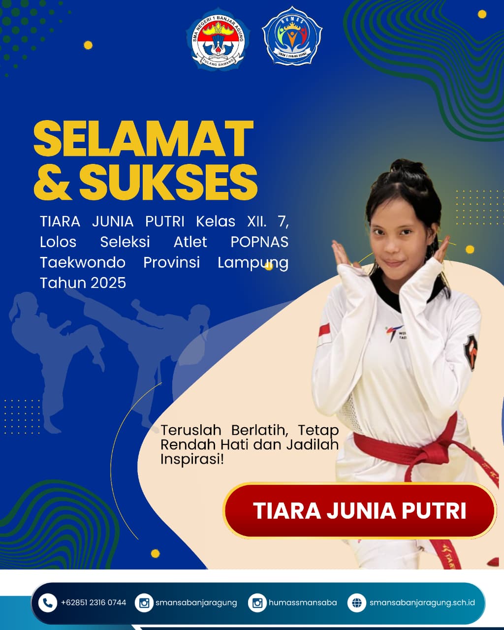 Keberhasilan Tiara ini diharapkan dapat menjadi inspirasi bagi siswa lain untuk terus berusaha dan berprestasi di berbagai bidang. SMAN 1 Banjar Agung turut bangga atas pencapaian ini dan akan terus memberikan dukungan penuh kepada siswa-siswanya untuk mengembangkan potensi mereka. Selamat kepada Tiara Junia Putri semoga kesuksesan ini menjadi awal dari prestasi-prestasi lainnya di masa depan.
