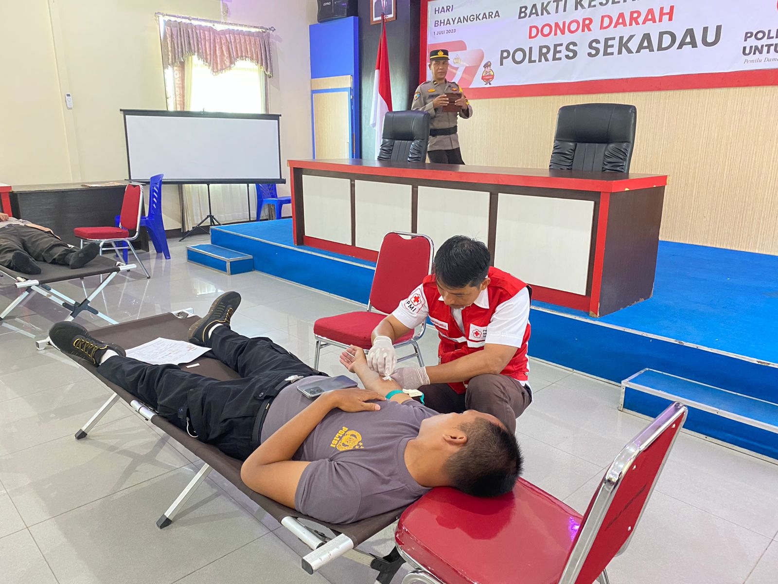Kapolres Sekadau AKBP Suyono melalui Wakapolres Kompol Hoerrudin menjelaskan bakti kesehatan donor darah yang terbuka untuk umum ini, merupakan bagian dari rangkaian peringatan menyambut Hari Bhayangkara ke 77 tahun 2023.