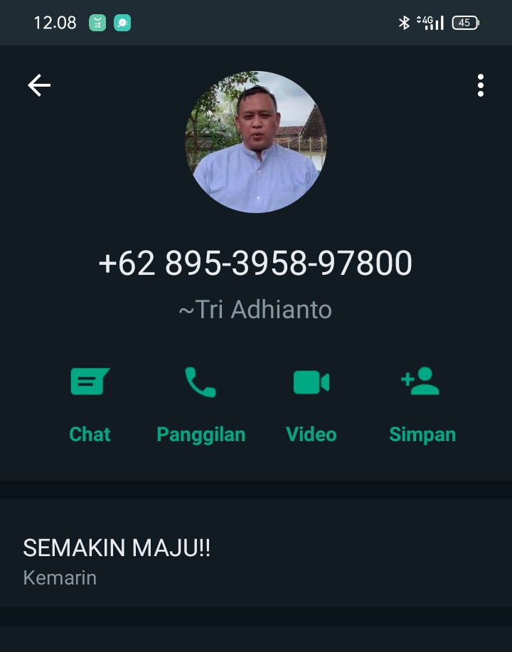 Bernomorkan 0895395897800 dengan profil Whatsapp bersosok foto Wakil Wali Kota Bekasi, oknum tersebut sempat berkomu-nikasi melalui japri atas nama Abdullah Muktar dengan Putra dari pemilik yayasan Sabilul Muhtadin.