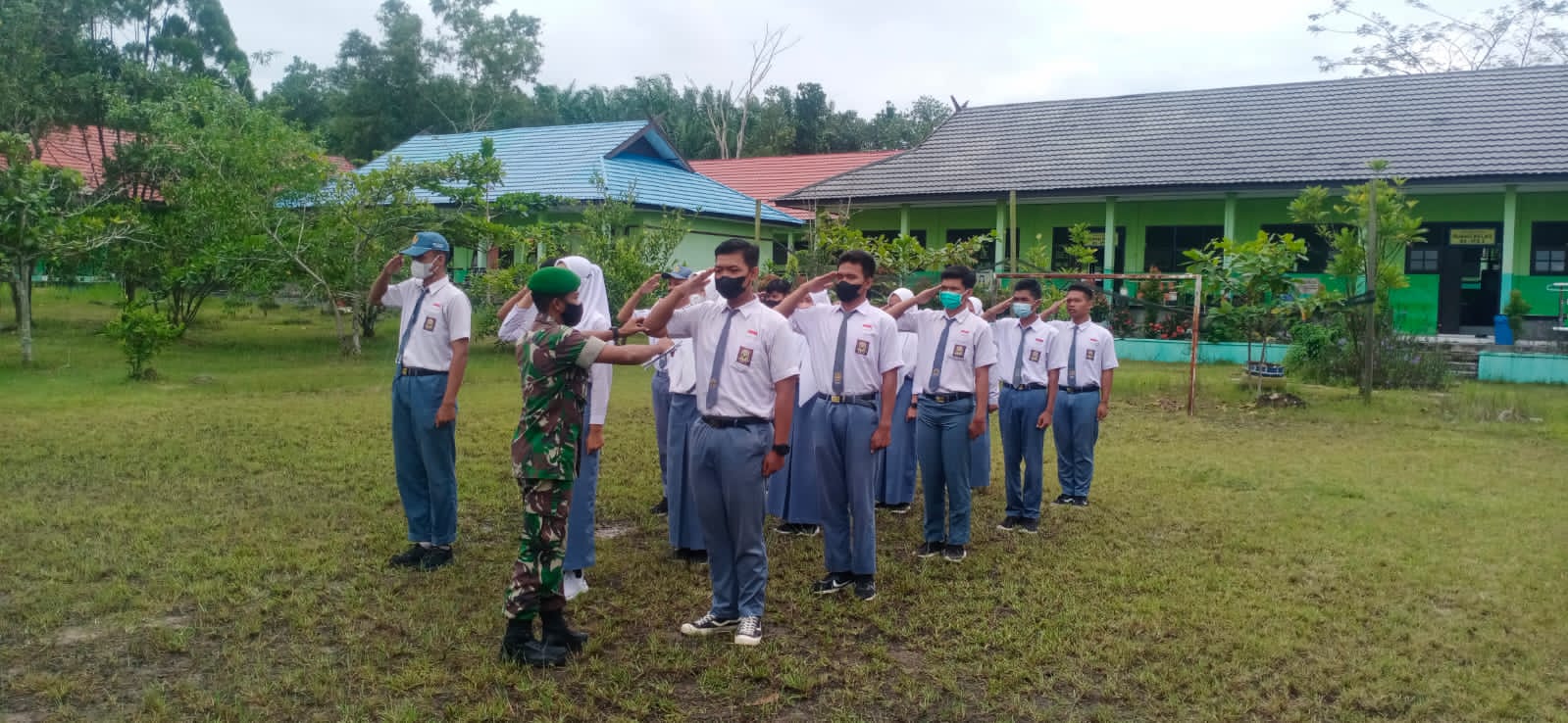 Kotawaringin Barat, Selasa (30/11/21) – Pelitakota.id Babinsa Bumiharjo, Koramil 1014-02/Kumai, memberikan pelatihan dasar Peraturan Baris Berbaris (PBB) kepada Siswa-siswi SMAN 2 Kumai Desa Bumiharjo, Kecamatan Kumai, Kabupaten Kotawaringin Barat