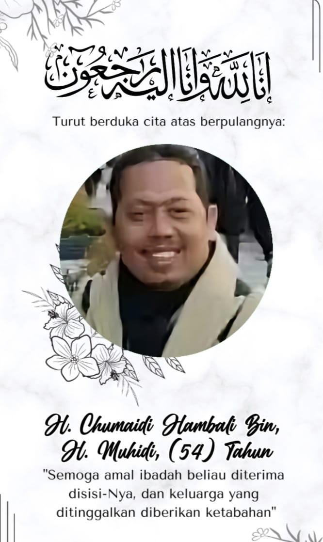 Jakarta – Inna Lillahi Wa Inna Ilaihi Rojiun telah berpulang ke Rahmatullah, Almarhum H.Chumaidi Hambali Bin H.Muhidi” Wafat karena sakit, Pada hari Rabu Tanggal 02 Oktober 2024.