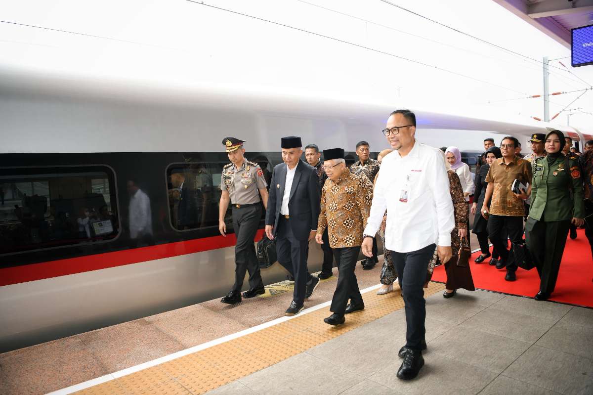 KAB. BANDUNG BARAT – PELITAKOTA.ID Penjabat Gubernur Jawa Barat Bey Machmudin beserta Penjabat Ketua TP PKK Jabar Amanda Soemedi Bey Machmudin menyambut kedatangan Wakil Presiden RI Ma’ruf Amin beserta istri Wury Ma’ruf Amin di Stasiun Kereta Cepat Padalarang, Kabupaten Bandung Barat, Selasa (23/4/2024).