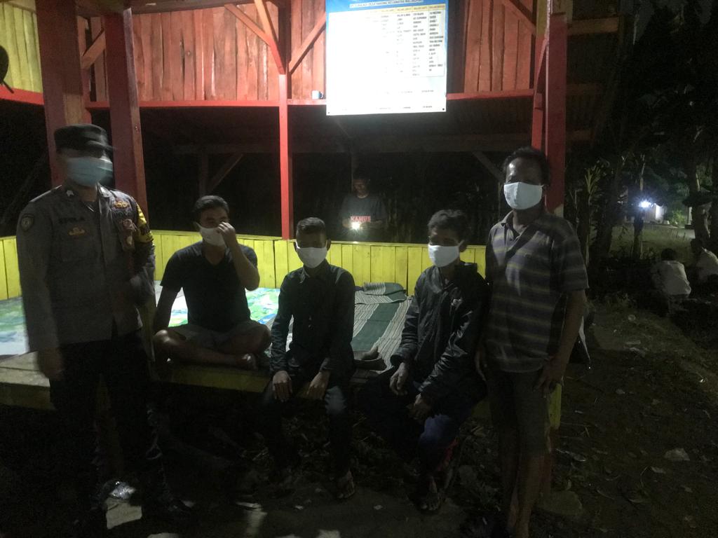 Dalam sambangnya, Bhabinkamtibmas Briptu Epul melaksanakan Dialog dengan warga yang sesang ronda sekaligus menyampaikan pesan kamtibmas agar Meningkatkan kewaspadaan terhadap para pelaku kejahatan dan peka terhadap situasi di sekitar serta tidak lupa bhabinkamtibmas menyampaikan antisipasi penyebaran Covid-19.