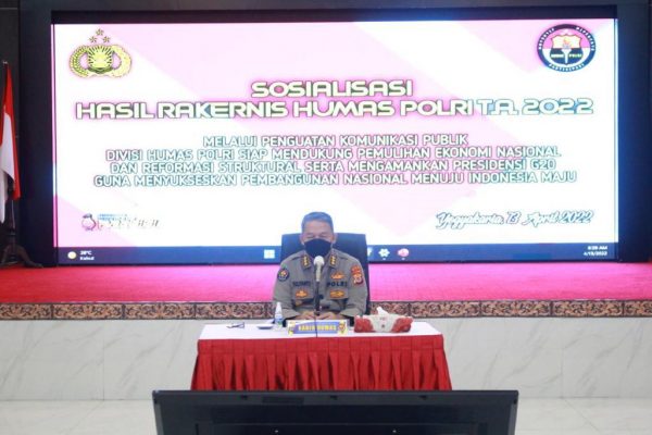 Kegiatan dengan mengangkat tema “Melalui penguatan komunikasi publik Divisi Humas Polri siap mendukung pemulihan ekonomi nasional dan reformasi struktural serta mengamankan presidensi G20 guna menyukseskan pembangunan nasional menuju Indonesia maju” tersebut dipimpin dan dibuka langsung oleh Kepala Bidang Hubungan Masyarakat Kombes Pol Yuliyanto, S.I.K., M.Sc.